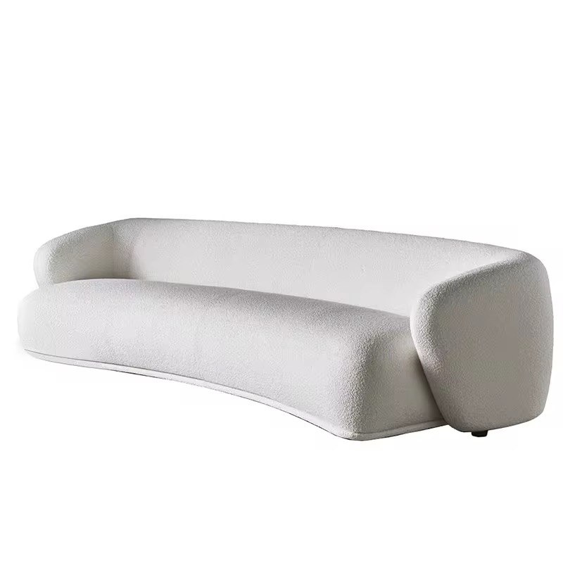Curved Bouclé Sofa Description Elevate your living space with this stunning Organic Curved Sofa, a masterpiece of contemporary design. Upholstered