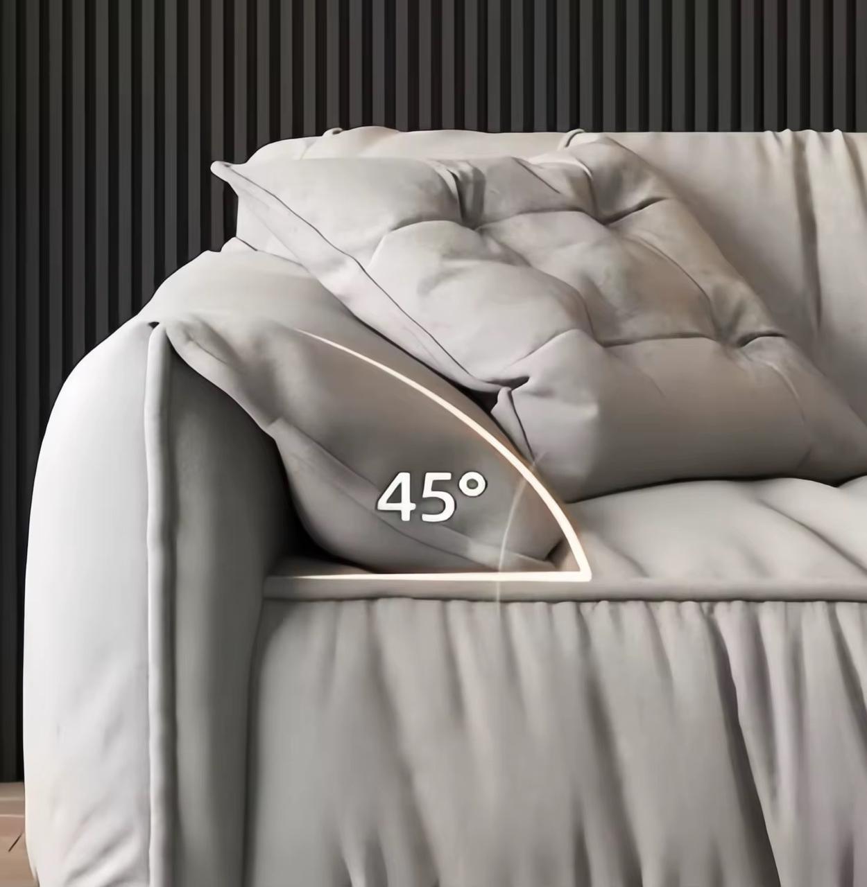 Seat is a layer of 12 cm latex rapped with down alternative, this mix fulfill the comfort and sinkage.
