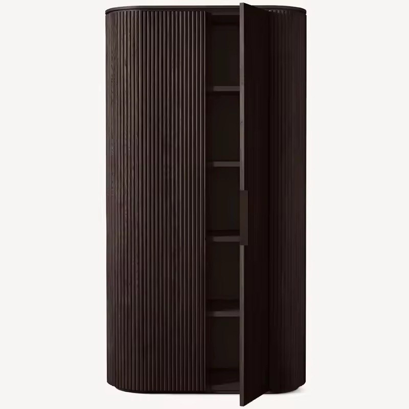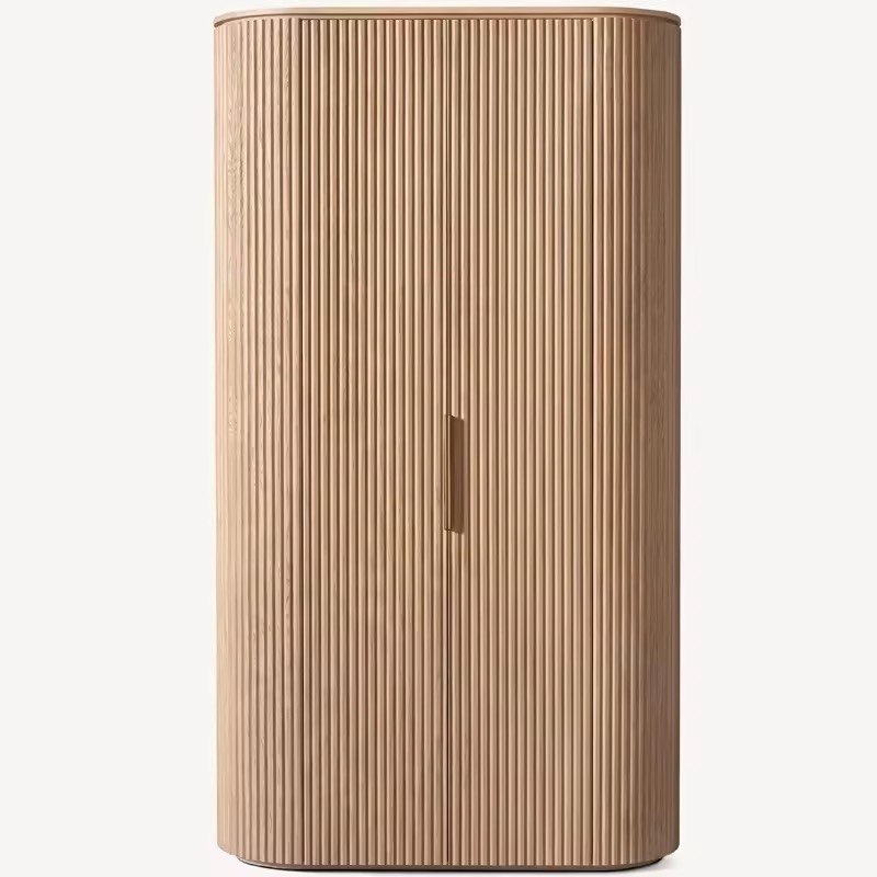 Architectural Elegance Make a grand statement with the Fluted Wardrobe. This piece is a celebration of modern craftsmanship, featuring a stunning oval silhouette wrapped in meticulously carved vertical slats. It’s designed to bring a sense of verticality and sophisticated texture to your space, blending seamlessly into high-end contemporary or Japandi interiors.
