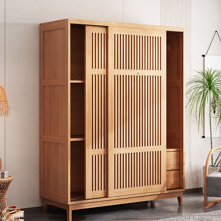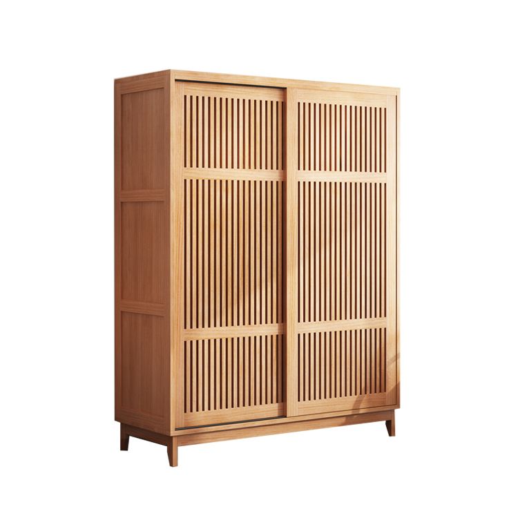The Shoji-Slat Detail: Two sliding doors feature a meticulous vertical lattice, echoing the iconic architecture of traditional Japanese screens. This